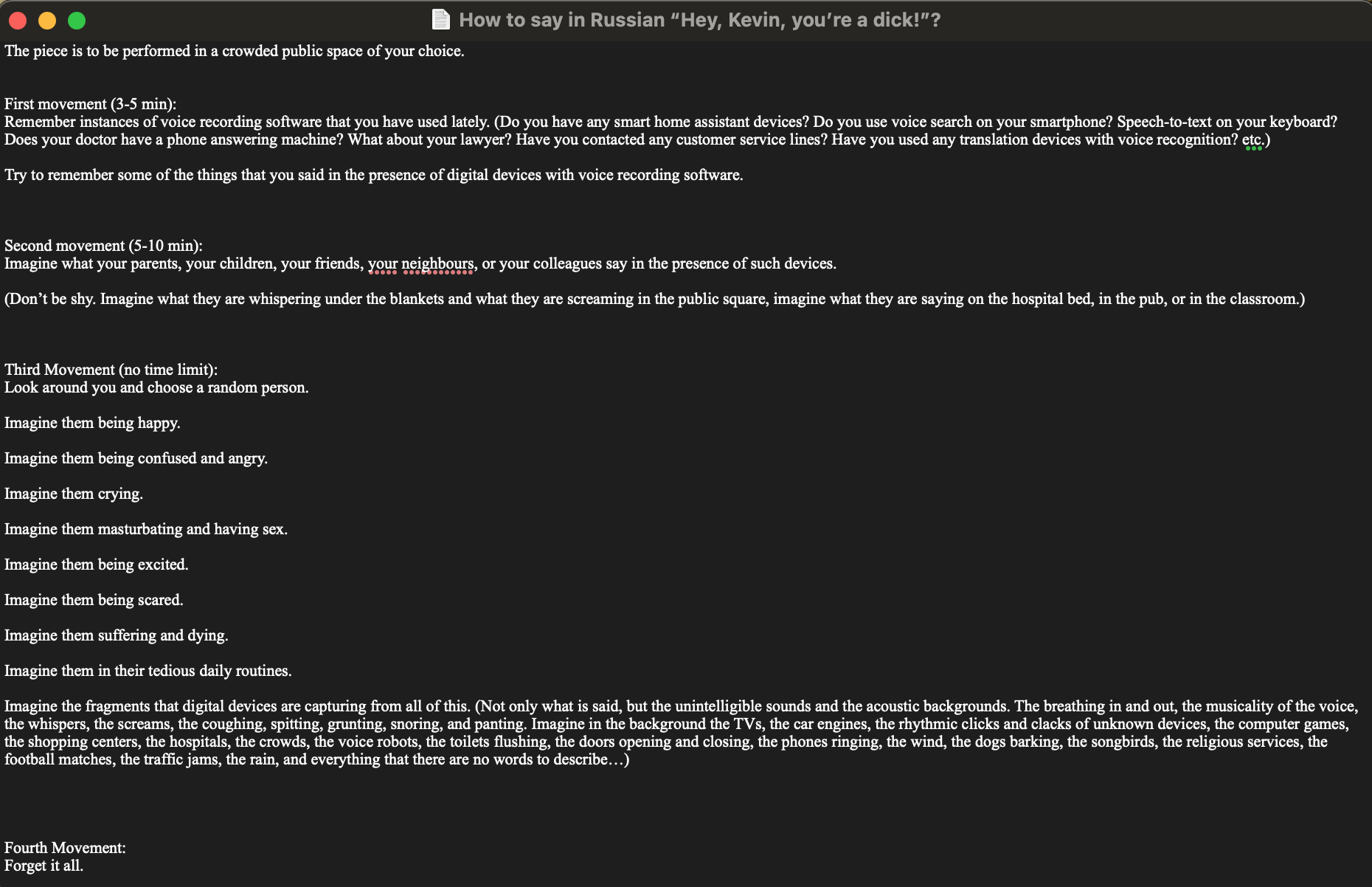 How to Say in Russian "Hey, Kevin, You'Re a Dick!"? (2025-2026) - an imaginary piece of electronic literature